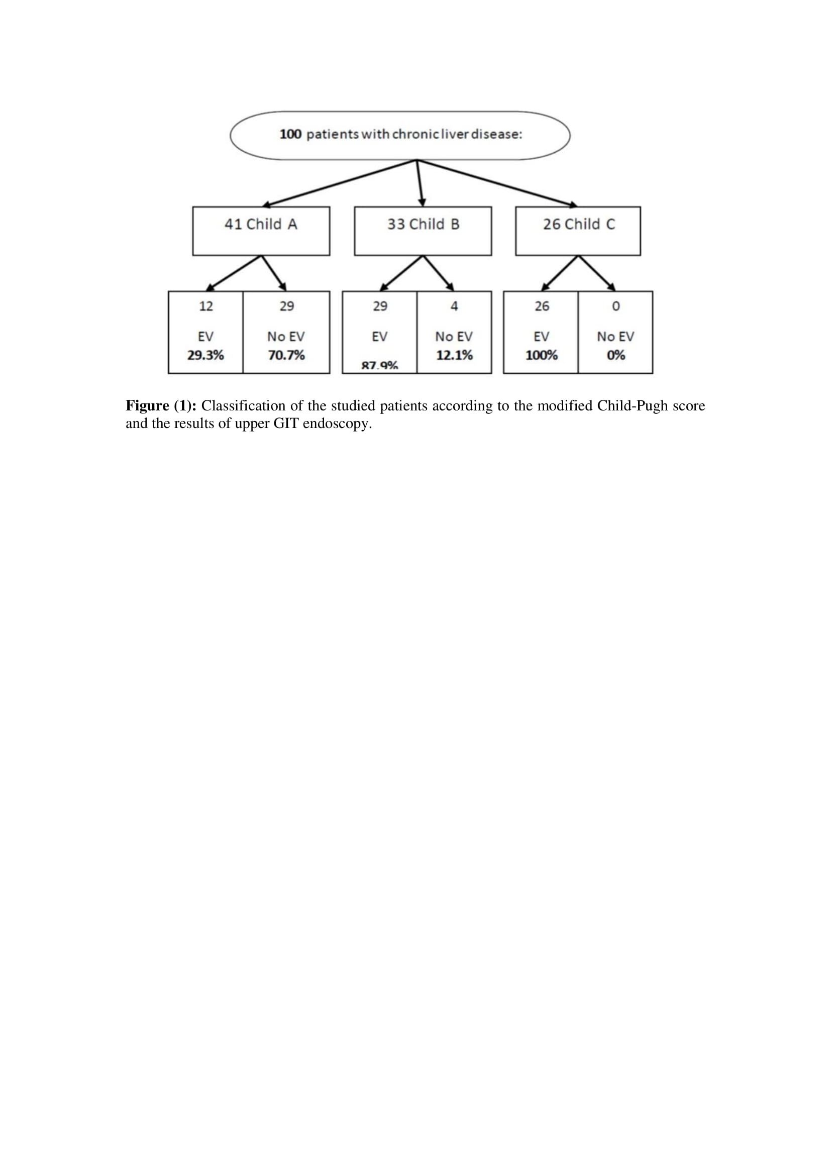 (1) Patients with current gastrointestinal bleeding, (2) Patients who had previously undergone band ligation or variceal sclerotherapy, (3) Patients who had previously undergone Trans jugular intrahepatic Porto systemic shunt, or surgery for portal hypertension were all excluded. (4) Portal vein thrombosis, (5) Hepatocellular carcinoma, (6) advanced other organ malignancy (7) Patients taking drugs for the primary prophylaxis of variceal hemorrhage (8) Patients with ongoing alcohol usage (less than 6 months without alcohol, Patients with other causes of splenomegaly or thrombocytopenia (hematological illness), (9) Other severe medical condition (end stage renal disease, congestive heart failure or severe respiratory syndrome) (10) Patients with bilharziasis or a history of canal water exposure.