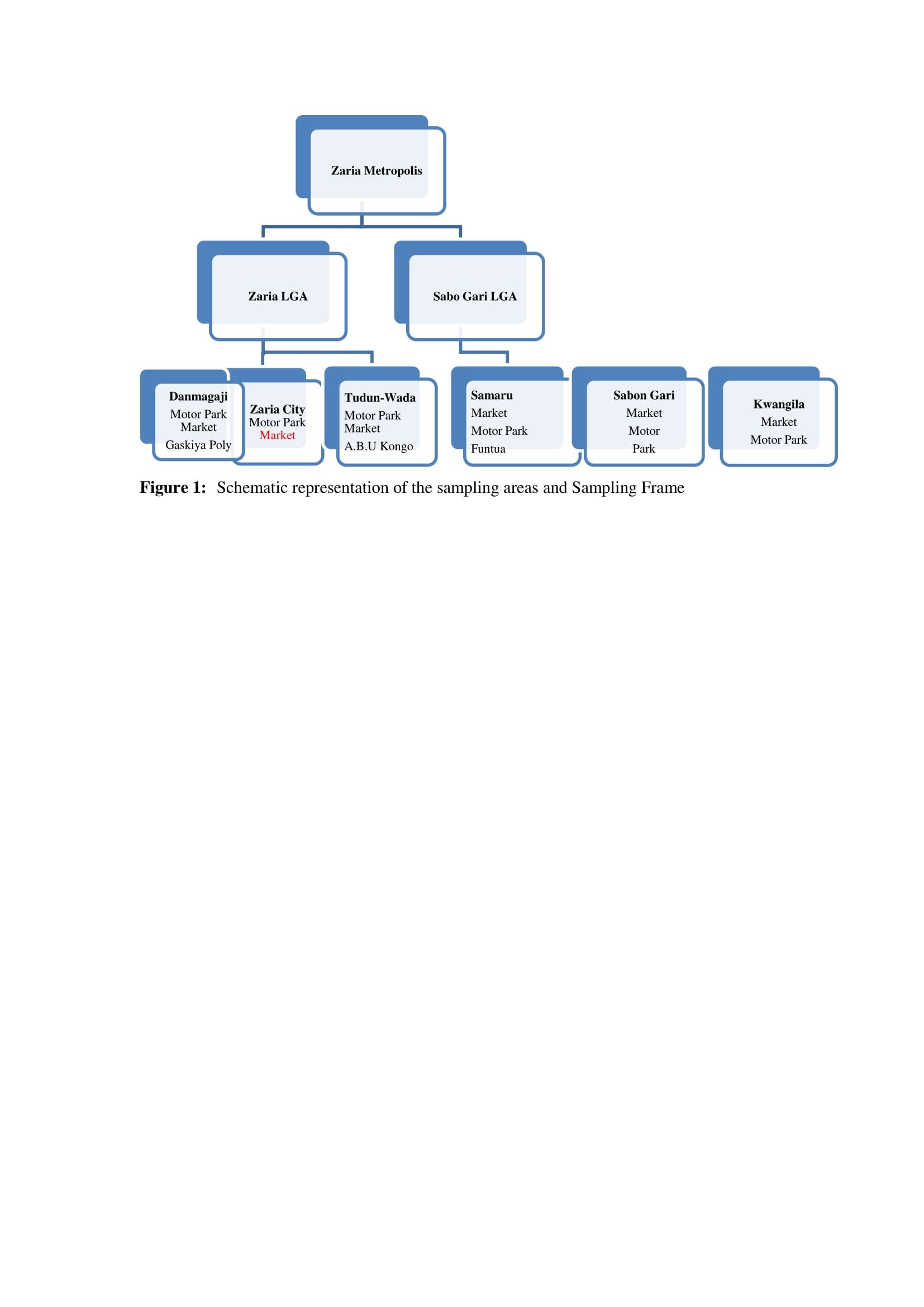 A cross-sectional study was designed to check for food-borne Listeria species in raw meat in Zaria metropolitan. The two Local Government Areas (Sabon Gari and Zaria) that make up the study area constituted the sampling frame. Samples of raw meat were purchased from retail outlets in six (6) different locations/districts were selected. These are Danmagaji, Zaria city, Tudun Wada, Samaru, Kwangila and Sabon Gari. Samples were collected by convenience sampling technique, as presented in figure 1 below.