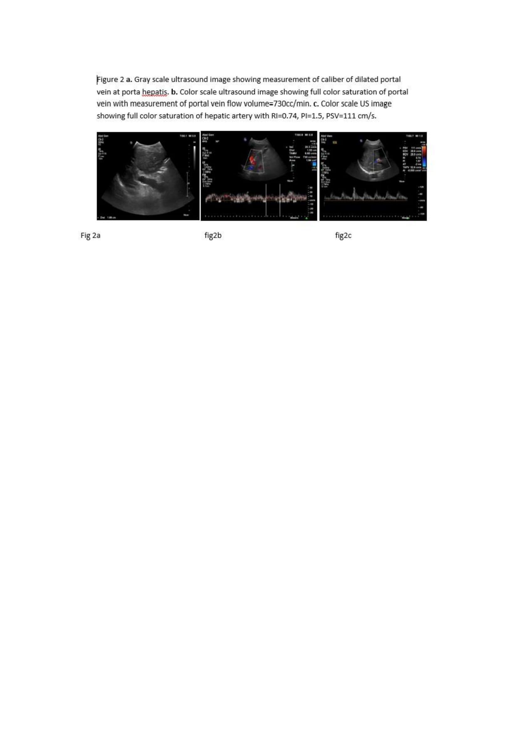 We also assess the direction of flow in portal vein, portal vein velocity (PVV) in (cm/sec). hepatic artery pulsatility index, and splenic artery resistance index (SARI).