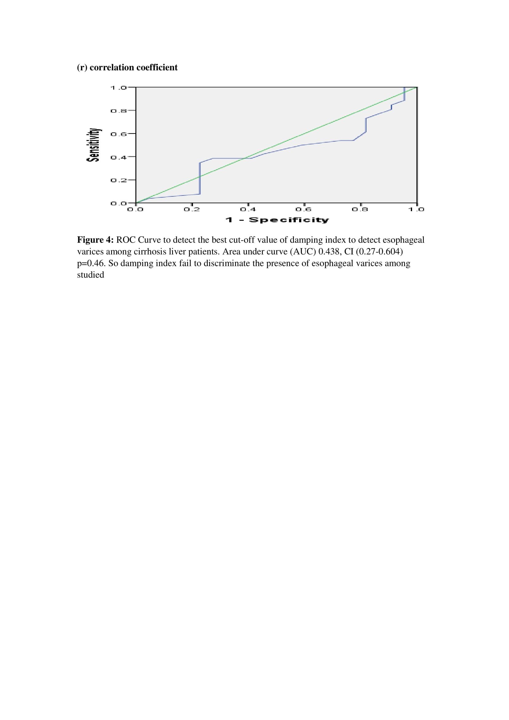 Table (4): Performance of damping index to discriminate the presence of esophageal varices among studied patients.