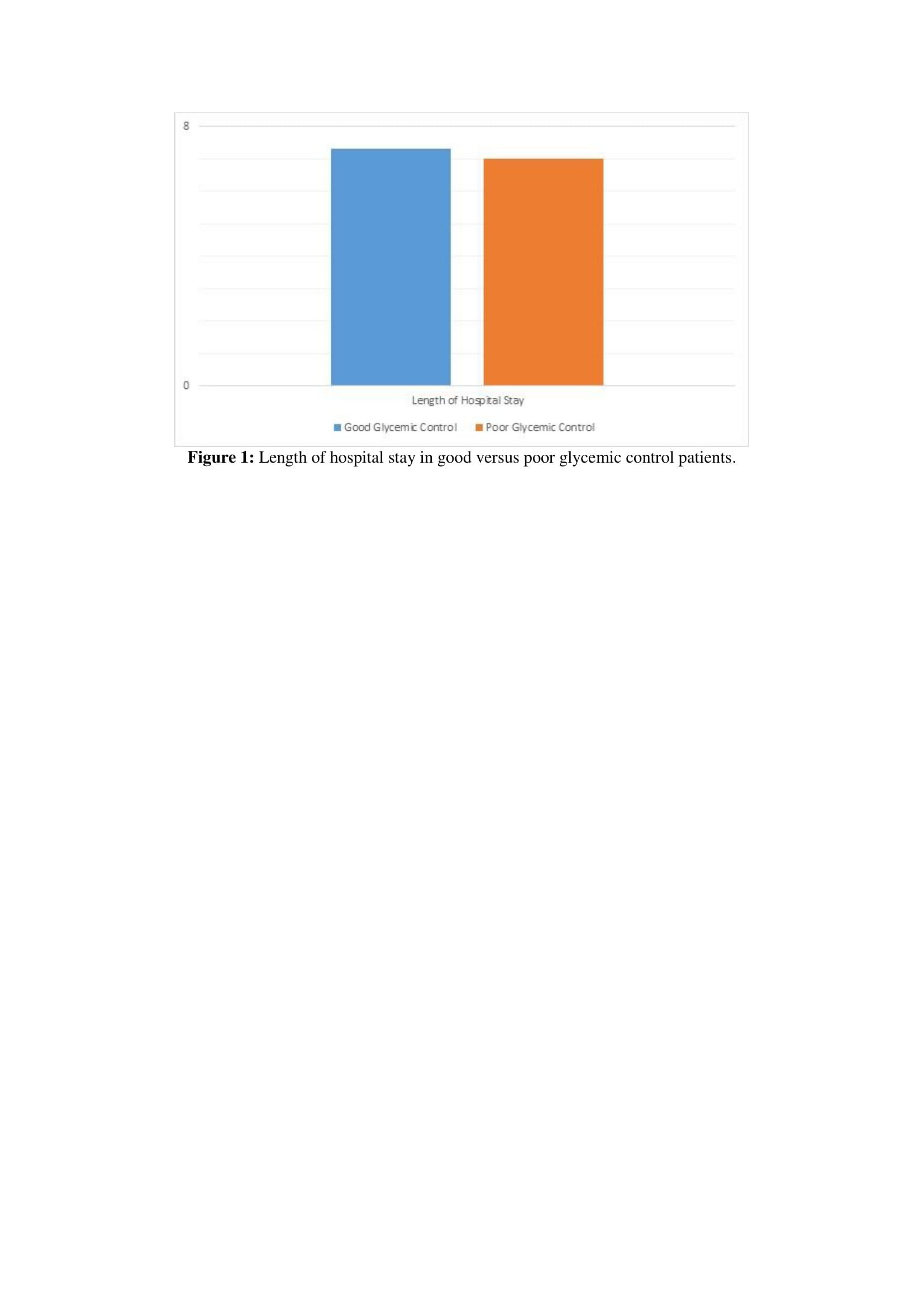 The mean length of hospital stay in patients with good glycemic control was 7.3 days. In contrast, the mean length of hospital stay in patients with poor glycemic control was 7.0 days. (Figure 1)