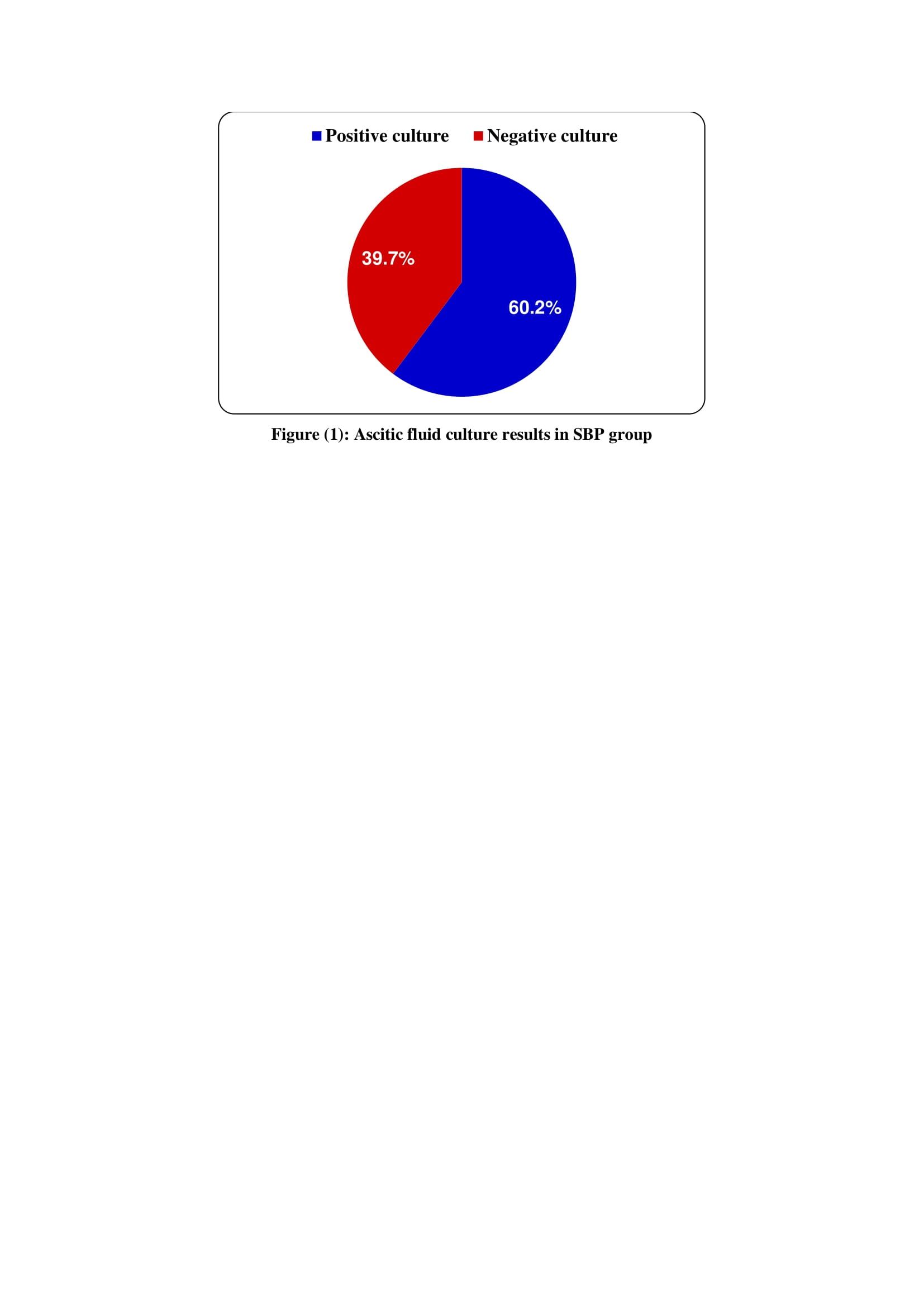 As regard laboratory parameters (Table 1), total leucocytic count (TLC), in both blood and ascitic fluid, and PMN leucocyte cell count in the ascitic fluid were statistically significant higher in SBP patients (P <0.001). Among SBP patients, ascitic fluid culture revealed positive results in 60.2% (44 out of 73 patients) of cases (Figure 1).