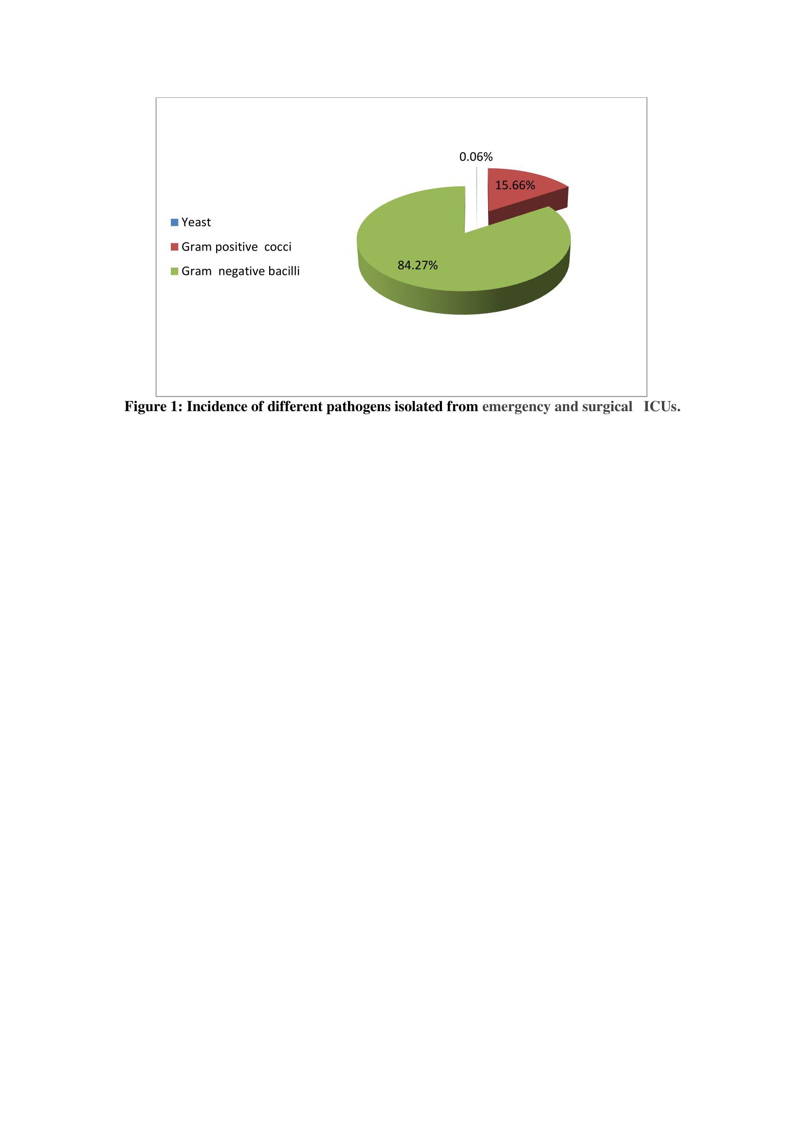 Table (2): The incidence of pathogens isolated from emergency and surgical ICUs