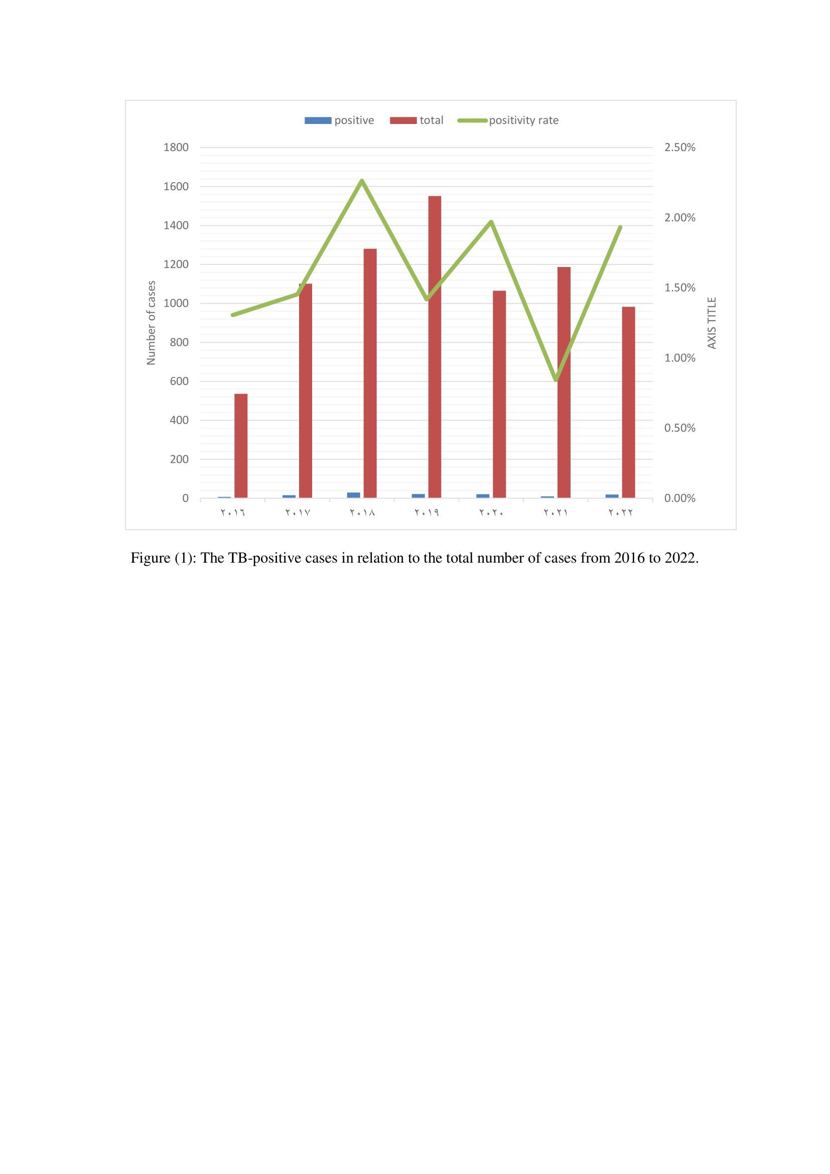 This retrospective study was conducted at the Central Microbiology Laboratory, Clinical Pathology Department, ASUH. This study included the records of all TB patients or suspects presenting to the hospital who underwent diagnostic tests for tuberculosis, either smear analysis, Polymerase chain reaction (PCR), GeneXpert or culture, during the period from January 2016 through July 2022. The in-patients were admitted to the different departments of surgery, medicine, pediatrics, gynaecology and obstetrics hospitals, and the various intensive care units. The records were collected using the data gathered from the laboratory information system, excluding duplicate samples.