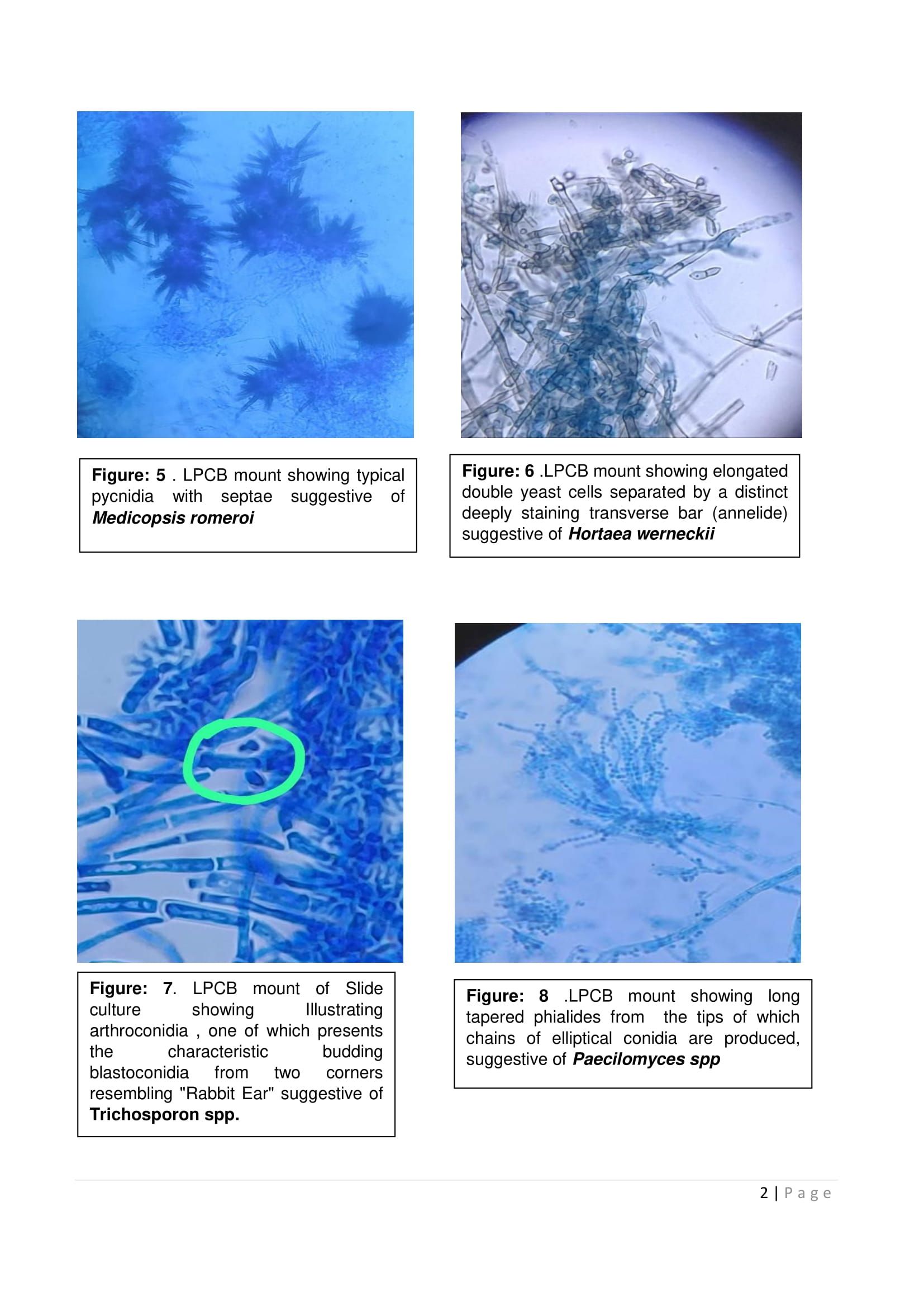 Opportunistic NDMs are seen in nature as plant pathogens and soil saprophytes. They are fast growing with universal presence and are often un-noticed laboratory contaminants. Different literature revealed that the most commonly isolated species of NDM are Scopulariopsis brevicaulis, Fusarium sp., Acremonium sp., Aspergillus sp., Scytalidium sp., and Onychocola canadienses [3].