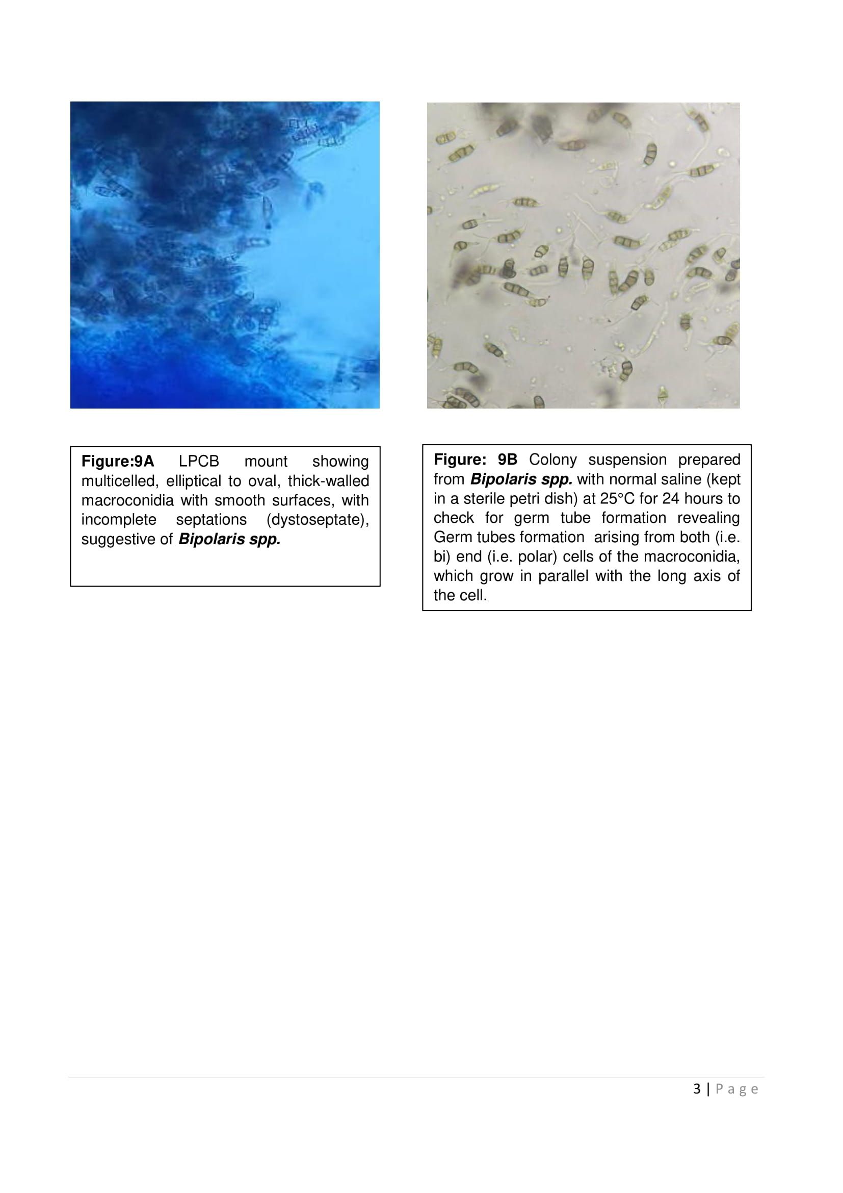 Among the 32 unusual NDM isolates causing onychomycosis 8 cases (25%) were Talaromyces spp. [Figure: 1], 6 cases (18.75%) were Fusarium spp. [Figure: 2], 4 cases (12.5%) were Mucor spp. [Figure: 3], 4 cases (12.5%) were Rhizopus spp. [Figure: 4], and 2 cases (6.25%) each of Medicopsis romeroi [Figure: 5], Hortaea werneckii [Figure: 6], Trichosporon sp [Figure: 7], Paecilomyces spp.[Figure: 8] and Bipolaris spp.[Figure: 9A &9B].
