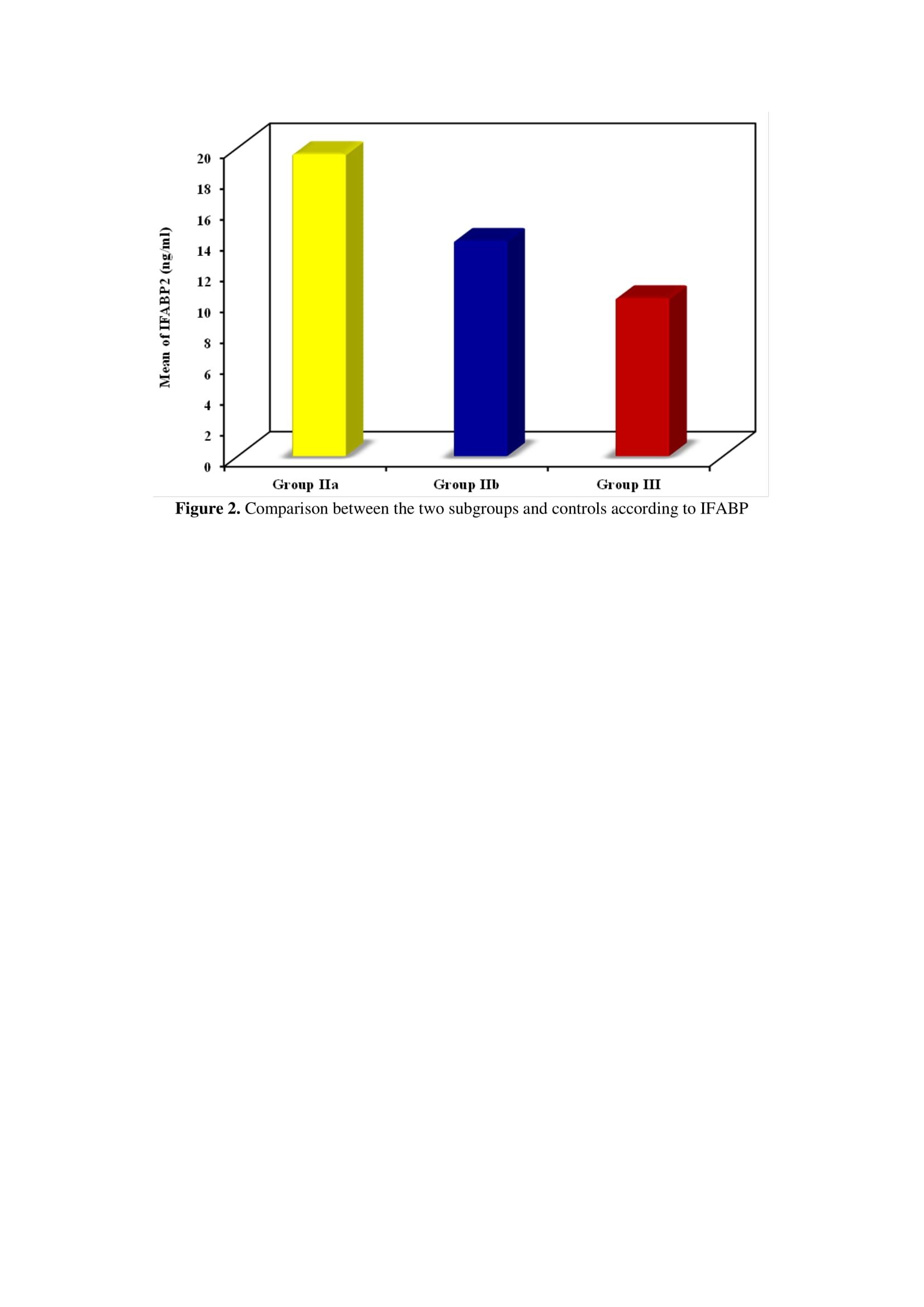 Table 2. Comparison between the two subgroups of group II and Control (group III) according to IFABP2