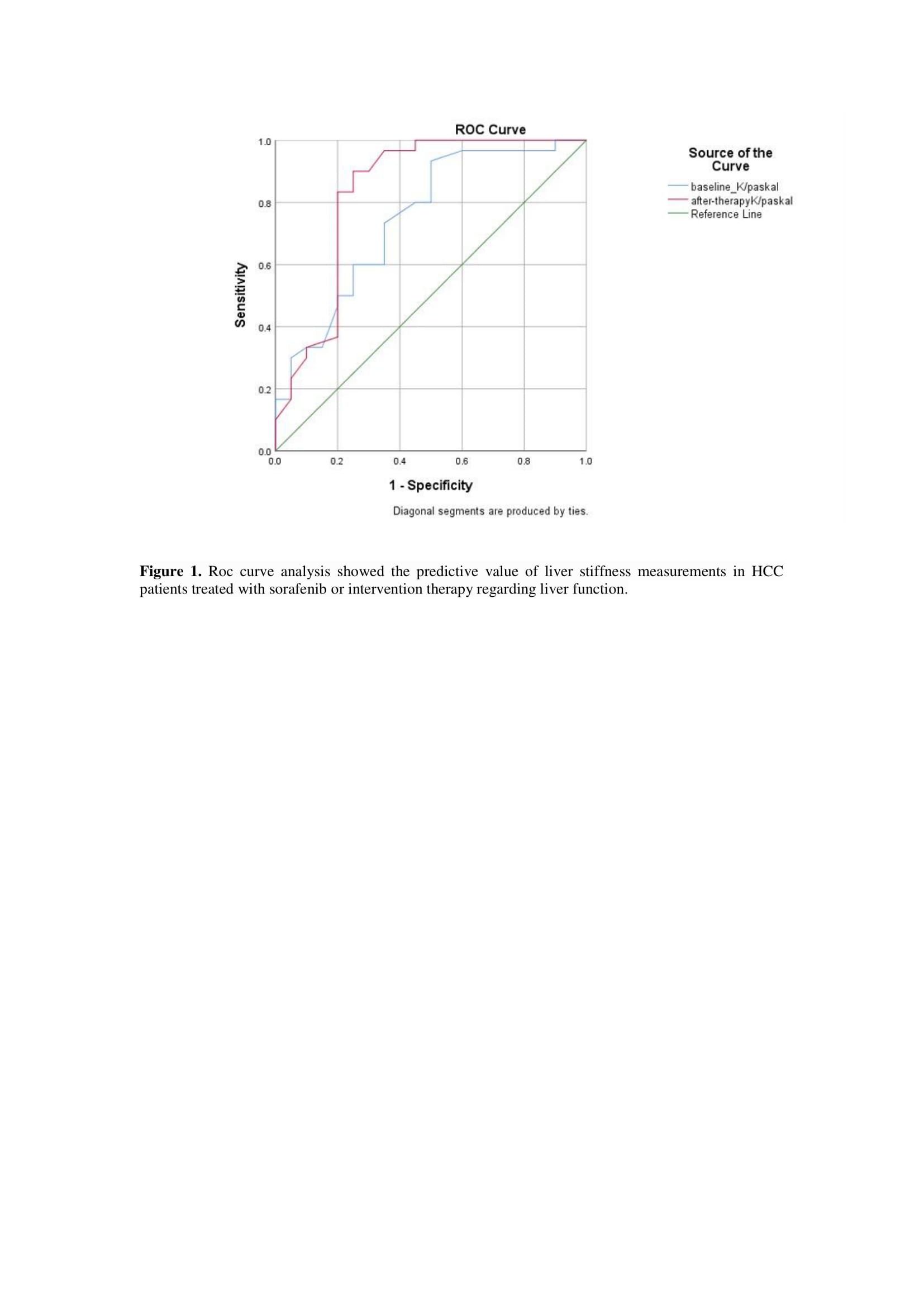 Table 5. Predictive value of liver stiffness measurements in HCC patients treated with sorafenib or intervention therapy regarding liver function