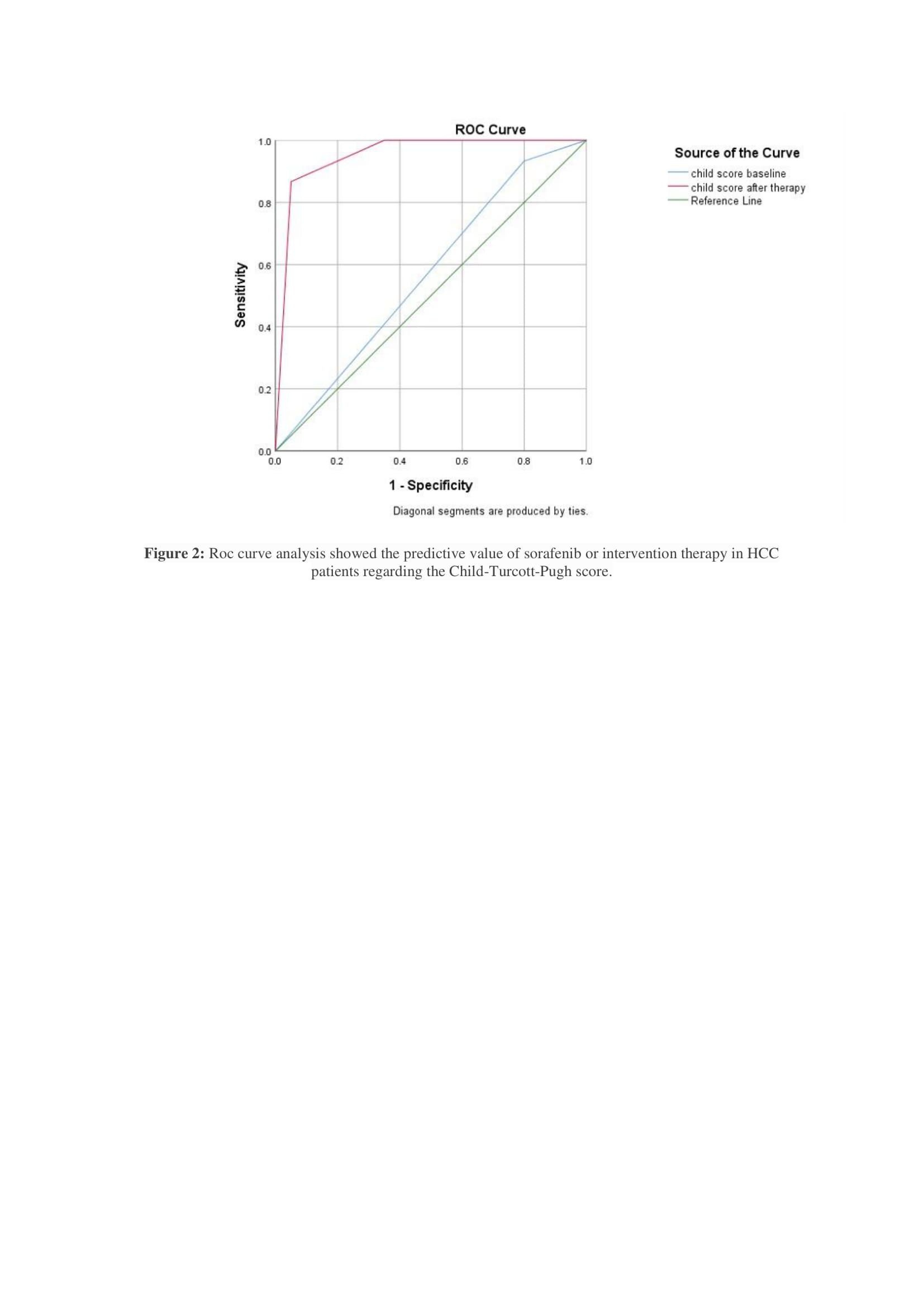 Table 6. Predictive value of sorafenib or intervention therapy in HCC patients regarding CTP score