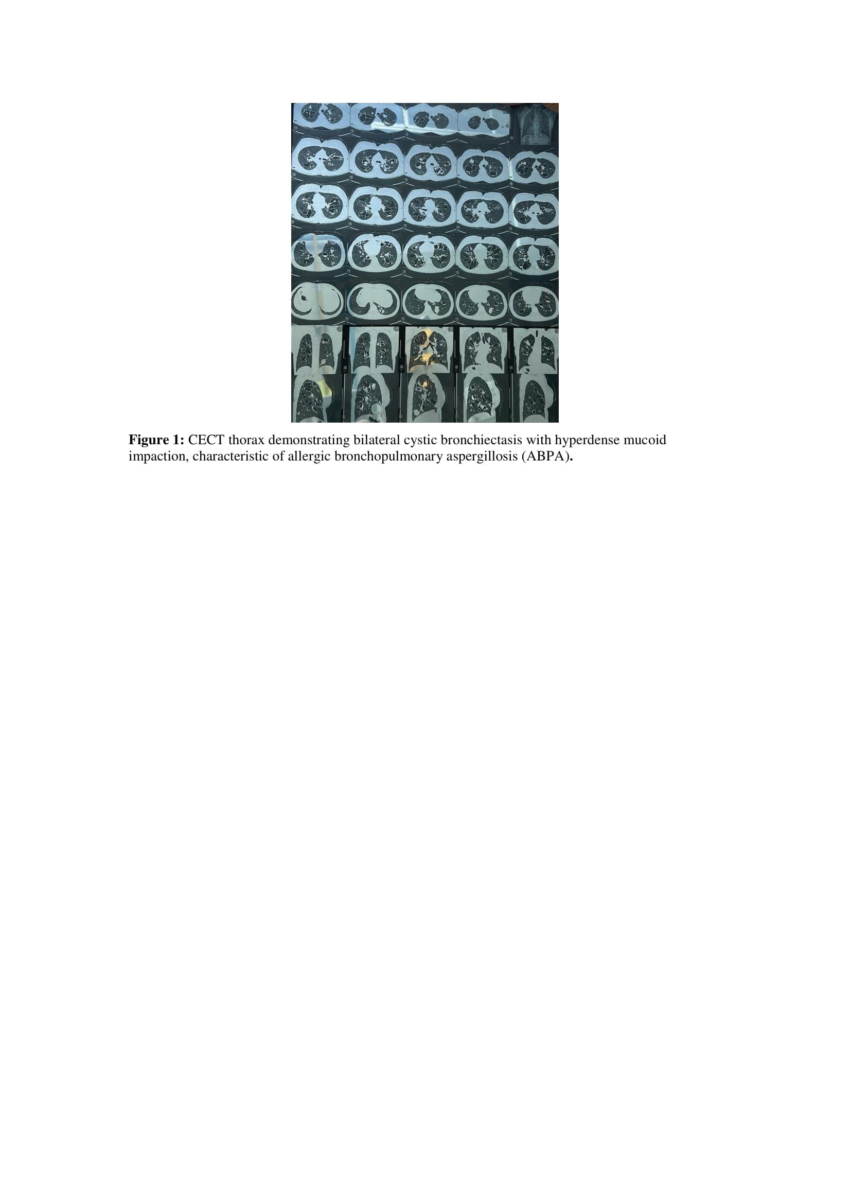 The concurrent diagnosis of ABPA in our patient required separate management. ABPA is characterized by hypersensitivity to Aspergillus antigens and typically presents with asthma, recurrent pulmonary infiltrates, and bronchiectasis. The diagnosis is based on clinical, radiological, and immunological criteria, according to the ISHAM working group criteria, which our patient fulfilled despite a lower total IgE level than typically seen [5].